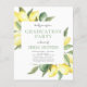 Invitación de graduación personalizable económica con limón en acuarela, elegante y moderna, con fondo blanco y tu mensaje y detalles. Esta invitación elegante y con estilo incluye limón lima cítrico verde con tipografía de escritura elegante y linda para el graduado especial de secundaria o universidad.