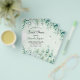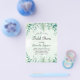 Un fondo verde acuarelado con vegetación de eucalipto y helechos del bosque. Personaliza y añade un nombre y detalles de la fiesta.