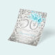 Elegante plantilla de invitación 50 cumpleaños con flores Verde azuladas plateadas y luces de cristal. Con un arreglo floral moderno.