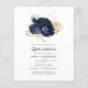 Invitación a quinceanera de rosas de color marina de moda vintage con acentos de oro con una mariposa al revés. Tenga en cuenta que esta invitación presupuestaria está en papel de volante y es muy delgada. Los sobres no están incluidos. Para obtener invitaciones más gruesas con sobres incluidos y productos coincidentes sobre el mismo tema, consulte la colección que aparece a continuación.