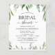 Boda nupcial Boda Primaria Boda de Agua Botánica Presupuestaria Invitaciones a la ducha de novia sobre fondo verde y blanco - incluye una tipografía de escritura hermosa y elegante con hojas botánicas modernas y vegetación para la celebración especial de la Novia a Ser.