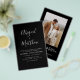 Presupuesto Personaliza este negro y blanco simple Minimalista y elegante doble cara con foto en la invitación trasera con tu mensaje y detalles. Esta invitación a la moda incluye una moderna y elegante tipografía de escritura manuscrita para la celebración especial del Boda a ser.