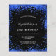 Tenga en cuenta que esta invitación está en papel de volante y es muy delgada. Los sobres no están incluidos. Para invitaciones más gruesas (el mismo diseño) visite nuestra tienda. Invitación a la fiesta de cumpleaños 21 (o a cualquier edad) de niñas y mujeres. Delante: Un fondo negro de moda. Decorada con polvo purpurina falso azul real. Personalice y agregue un nombre y detalles del fiesta. El nombre se escribe con un guión de estilo con letras a mano.