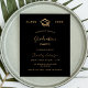 Tenga en cuenta que esta invitación está en papel de volante y es muy delgada. Los sobres no están incluidos. Para invitaciones más gruesas (el mismo diseño) visite nuestra tienda. Una moderna y elegante invitación a la fiesta de graduación. Un fondo negro decorado con una gorra dorada. Personalice y agregue un nombre, año y detalles. Cartas doradas.