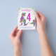 Este Rex y estegosauro color rosa y morado invitan a los fans de Dino a una fiesta de cumpleaños para los amantes de los dinosaurios. Personalice este colorido y psicodélico tiranosaurio rosado y la invitación al estegosaurio añadiendo el nombre del niño o chica de cumpleaños, el número de cumpleaños y los detalles del fiesta y todos se preparan para un divertido cumpleaños de dinosaurio lleno. Todas las especies de dinosaurios son bienvenidas. Ilustraciones de Dinosaur de la era del jurásico prehistórico, obra original de la artista Catherine Sweetman
