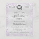 Una moderna, elegante y minimalista invitación a la fiesta de graduación. Fondo falso de color plateado decorado con polvo violeta y falso purpurina. Personalice y agregue un nombre, año y detalles. Letras de color negro.