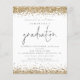 Invitación blanca de graduación de PAPER Gold Purpurina 2024. Una alternativa PAPER (no tarjeta) de gran valor en un tamaño menor de 4,5" x 5,6" sin sobres - los sobres A6 estándar son el tamaño más cercano a ajustar. Los elegantes purpurinas de imitación dorada están en la parte superior e inferior y también en la parte trasera. La graduación se realiza en un estilo moderno de escritura a mano. Personaliza fácilmente el resto del texto a tu propia persona.