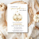 ¡Celebra la próxima llegada de dos pequeñas y dulces calabazas con esta encantadora invitación de baby shower! Con elegantes calabazas blancas, estrellas doradas y hojas de otoño, este diseño de acuarela acogedor es perfecto para un baby shower de gemelos o cualquier celebración con tema de otoño.