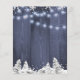 Elegante invitación de boda rústica de invierno, plantilla de volante de estilo asequible sobre madera de granero azul marino con borde de bosque de pinos, copos de nieve blancos y luces centelleantes. +++++++++++ Fácil de personalizar con tus detalles. +++++++++++ La invitación es adecuada para bodas elegantes de invierno, rústicas, de montaña, azules marino y blancas. ++++++++++ ¡LEE ESTO ANTES DE COMPRAR! Esta es una tarjeta de boda asequible impresa en un VOLANTE. ++++ Ten en cuenta que EL PAPEL ECONÓMICO ES DELGADO - Puedes actualizar para que esta tarjeta se imprima en cartulina ++++ NO SE INCLUYEN SOBRES. +++ Verifica toda la información y la ortografía de tu texto porque recibirás exactamente lo que ves - nadie más verificará nada antes de imprimir. ++++ Esta tarjeta está diseñada para un tamaño de 4,5" x 5,6". En caso de que elijas otro tamaño de tarjeta y el texto se salga de la página