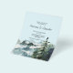 Elegante invitación de boda económica con bosque y montañas en acuarela. ¡Volante!