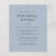 Una excelente alternativa de PAPEL (no cartulina) SIN SOBRES a un tamaño más pequeño de 4,5” x 5,6” y a un precio económico. (Los sobres estándar A6 son el tamaño más cercano para que quepan). Invitación simple de cena de ensayo de boda en azul polvoriento. Fácil de personalizar con tus palabras. También puedes cambiar los colores del texto y del fondo en cualquier lado si lo deseas a través de la opción 'Personalizar más'.