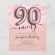 Elegante plantilla de invitación para Purpurina de globo de oro Rosa de la 90ª fiesta de cumpleaños. Grandes fiestas de cumpleaños para hombres y mujeres.