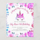 Flyer Invitación de cumpleaños floral con cara de unicor