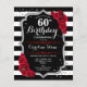 Invitación de cumpleaños número 60 presupuesto. Diseño elegante en negro, blanco y rojo con brillo falso. Rayas negras y blancas con rosas rojas. Perfecto para una fiesta de cumpleaños elegante. *** Tenga en cuenta que este diseño se imprimirá en un papel de folleto muy delgado y no viene con sobres. Perfecto para invitaciones de presupuesto. Si está buscando el mismo diseño pero en papel más grueso, visite nuestra tienda.