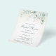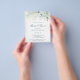 Elegante volante de invitación de despedida de soltera con presupuesto limitado con hojas de eucalipto y vegetación con motas de brillo de oro falso en la parte superior. A continuación, están los detalles de su evento en verde oscuro, sobre un lavado de acuarela pastel. La parte posterior es un tono a juego de azul verdoso suave. Un diseño simple y rústico que es ideal para una celebración con tema botánico en verano. Estas invitaciones de despedida de soltera económicas se imprimen en hojas de papel para una opción económica. POR FAVOR TOME NOTA: Estas no incluyen sobres.