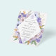 Hermosas flores polvorientas púrpuras y azules crean un marco de diamante para rodear los detalles de su fiesta de compromiso. Las flores y hojas doradas abiertas dan al diseño un ambiente lujoso.
