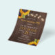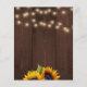 Elegante rústico con presupuesto bajo y asequible para una fiesta de inauguración de casa de otoño / plantilla de volante de invitación elegante en madera de granero marrón oscuro con ramos de girasoles amarillos dorados y luces centelleantes. La invitación es adecuada para elegantes barbacoas / fiestas de inauguración al aire libre en el patio trasero rústico de otoño. POR FAVOR LEA ESTO ANTES DE COMPRAR! Esta es una tarjeta de boda con presupuesto asequible impresa en un VOLANTE. Tenga en cuenta que EL PAPEL ECONÓMICO ES DELGADO - Puede actualizar para que esta tarjeta se imprima en cartulina. NO SE INCLUYEN SOBRES. Verifique toda la información y la ortografía de su texto porque recibirá exactamente lo que ve - nadie más verificará nada antes de imprimir. Esta tarjeta está diseñada para un tamaño de 4.5" x 5.6". En caso de que elija otro tamaño de tarjeta y el texto se salga de la página, todo deberá