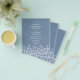 Decore el tono de su boda botánico azul con flores silvestres y suites de invitación encantadoras. La manera perfecta de anunciar su gran día a sus amigos y familiares, estas invitaciones le darán a sus invitados una mirada de la belleza botánica que les espera. La suite de invitados debe reflejar la belleza del mundo natural, con una suave paleta de color azul polvoriento, delicadas flores silvestres y un toque de vegetación. Tanto si elige invitaciones tradicionales en papel como opciones digitales ecológicas, cada detalle debe capturar perfectamente la esencia de su boda botánico. Una suite de invitados elegante y cuidada es la manera perfecta de comenzar su viaje de boda a pie derecho. Póngase en contacto con nosotros hoy mismo para empezar a diseñar su suite de invitaciones de ensueño y darle vida a la magia de su boda botánico azul polvoriento.