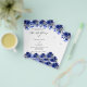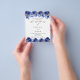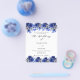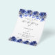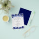 Tenga en cuenta que esta invitación está en papel de volante y es muy delgada. Los sobres no están incluidos. Para invitaciones más gruesas (el mismo diseño) visite nuestra tienda. Un fondo blanco, decorado con flores azules y blancas. Personalice y agregue sus nombres y detalles. Fondo azul.