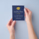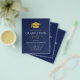 Presupuesto 2023 Invitaciones modernas y elegantes a la fiesta de graduación azul y oro de la Marina - incluye una bella y elegante tipografía de escritura con un estilo de moda moderno para la celebración especial de Graduado a Ser Clase.