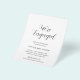 Folleto contemporáneo de invitación a la fiesta de compromiso de presupuesto en blanco y negro con un diseño sencillo y minimalista con "Estamos comprometidos" en un elegante guión de caligrafía. Un diseño moderno que combina bien con cualquier tipo de fiesta de compromiso. NOTA: No incluyen sobres.