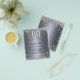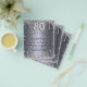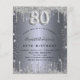 Una invitación moderna, elegante y glamurosa para una fiesta de cumpleaños número 80. Un fondo con apariencia plateada falsa decorado con polvo brillante. Personalice y agregue su nombre y detalles de la fiesta. El número 80 está escrito con una fuente de estilo globo, escritura.