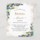 Bienvenidos a una elegante despedida de soltera. Un fondo blanco chic. Decorado con hojas de eucalipto pintadas con acuarela verde, ramitas, follaje, hojas de oro falso y polvo de brillo dorado. Personalice y agregue el nombre de la futura novia y detalles de paraty. Letras negras y doradas.