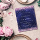 Una invitación moderna, elegante y glamurosa para una fiesta de cumpleaños de 21 años (o cualquier edad). Un fondo azul marino, decorado con polvo de purpurina rosa falso. El color azul es irregular. Personalice y agregue su nombre y los detalles de la fiesta.