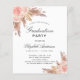 Para una fiesta de graduación moderna de estilo boho. Un fondo blanco elegante. Decorado con flores, rosas y hierba de pampas de color rosa y dorado rosa. Personalice y agregue un nombre y detalles de la fiesta.
