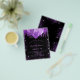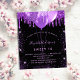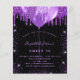 Para un elegante Sweet 16, cumpleaños 16. Un fondo negro elegante. Decorado con purpurina falsa púrpura y globos. Personalice y agregue un nombre, edad y detalles de la fiesta. El nombre está escrito con una letra manuscrita estilo script