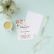 Tenga en cuenta que esta invitación está en papel de volante y es muy delgada. Los sobres no están incluidos. Para invitaciones más gruesas (el mismo diseño) visite nuestra tienda. Para una Baby Shower, celebrando a una niña. Un fondo blanco moda. Decorada con un rosa de color oro rosa y color rosa claro, flor, eucalipto floral y verde, hojas, una primavera dorada. Personalice y agregue un nombre y detalles del fiesta. El texto: Baby Shower y el nombre de la madre a ser están escritos con una escritura de estilo con letras a mano moderna. Atrás: color de fondo dorado rosa.