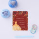 Una invitación moderna, elegante y glamurosa para una fiesta de cumpleaños de 18 años (o cualquier edad). Un fondo rojo con polvo de purpurina dorada falsa, un vestido y rosas rojas, flores. El nombre está escrito con un estilo de letra manuscrita moderno. Personalice y agregue los detalles de su fiesta.