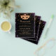 Tenga en cuenta que esta invitación está en papel de volante y es muy delgada. Los sobres no están incluidos. Para invitaciones más gruesas (el mismo diseño) visite nuestra tienda. Para una elegante Quinceañera, 15ª fiesta de cumpleaños temática Masquerade. Un elegante fondo negro. Decorada con polvo de purpurina de oro falso morado y una máscara dorada de máscaras. Personalice y agregue un nombre, edad y detalles del fiesta. El nombre se escribe con un guión de estilo con letras a mano