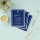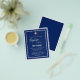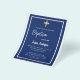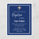Una invitación moderna y elegante. Un fondo azul marino decorado con marcos blancos y una cruz dorada. Personaliza y añade un nombre y detalles. Texto blanco.