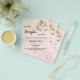 Tenga en cuenta que esta invitación está en papel de volante y es muy delgada. Los sobres no están incluidos. Para invitaciones más gruesas (el mismo diseño) visite nuestra tienda. Un fondo dorado subió y degradado de color rosa oscuro, decorado con calabaza de color crema y flores. Personalice y agregue el nombre y los detalles del fiesta. Texto: Una calabaza está en camino.