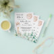 Tenga en cuenta que esta invitación está en papel de volante y es muy delgada. Los sobres no están incluidos. Para invitaciones más gruesas (el mismo diseño) visite nuestra tienda. Para una ducha de bebé, sin diferencias de género. Un fondo blanco. Una tierna jirafa de bebé, vegetación eucaliptus, helechos de bosque y una hippy sonriente luna. Personalice y agregue el nombre del nombre de la futura madre y los detalles del fiesta. Texto: Estamos sobre la Luna, Baby Shower y el nombre está escrito con un guión de estilo escrito a mano