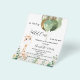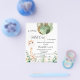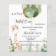 Tenga en cuenta que esta invitación está en papel de volante y es muy delgada. Los sobres no están incluidos. Para invitaciones más gruesas (el mismo diseño) visite nuestra tienda. Un fondo blanco, una tierna jirafa y eucalipto verde, helechos de bosque y globos. Personalice y agregue el nombre y los detalles del fiesta. Texto: Un poco salvaje está en camino.