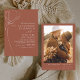Invitaciones de Boda Bohemio Minimalista Floral Botánico de Terracota (terra cotta) y Marrón Neutro con Arte de Línea para Otoño (Otoño), Invierno, Primavera o Verano con Foto o Imagen - incluye hermosa y elegante tipografía de letra para la celebración del Día Especial de la Boda.
