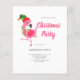 Folleto de invitación del partido Navidades de flamingo rosado del presupuesto. Es fácil cambiar el texto. Diseño divertido para la fiesta de vacaciones.