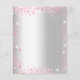 Tenga en cuenta que esta invitación está en papel de volante y es muy delgada. Los sobres no están incluidos. Para invitaciones más gruesas (el mismo diseño) visite nuestra tienda. Una invitación moderna, elegante y glamurosa para una ducha de novias. Un fondo falso plateado de aspecto metálico con purpurina falso rosa, chispas, vestido y flores rosadas. El nombre está escrito con una escritura de estilo con letras a mano moderna. Personalice y agregue los detalles de su fiesta.