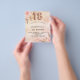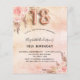 Un fondo metálico falso rústico de color rosa dorado rojizo y rosa suave. Decorado con flores, rosas y hierba de pampas de color dorado rojizo y rosa. Personalice y agregue un nombre y detalles de la fiesta. El número 18 está escrito con una fuente estilo globo.
