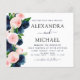 Invitaciones a la Boda Primaria de la Marina Azul y Rubor Rosa Moderno y Elegante Floral Floral - incluye tipografía de escritura hermosa y elegante con flores botánicas modernas y vegetación para la celebración especial del Día de la Boda.