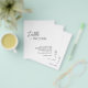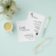Moderno presupuesto en blanco y negro todo en una sola invitación a la boda (impreso en un delgado papel de volante - sobres no incluidos) con un diseño simple y mínimo con el nombre de la novia en un guión elegante y el nombre del novio en una fuente contemporánea sans serif. Debajo, en la esquina inferior derecha, están los detalles de los eventos en un diseño minimalista. La parte posterior tiene sus detalles adicionales y el código QR, por lo que puede omitir la tarjeta de gabinete y la tarjeta RSVP.