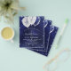 Tenga en cuenta que esta invitación está en papel de volante y es muy delgada. Los sobres no están incluidos. Para invitaciones más gruesas (el mismo diseño) visite nuestra tienda. Una invitación moderna, elegante y glamurosa para una fiesta de cumpleaños número 21 (o cualquier edad). Un fondo azul marino, decorado con finos destellos purpurinas y globos blancos. El color azul es desigual. Personalice y agregue su nombre y detalles del fiesta.