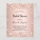 Tenga en cuenta que esta invitación está en papel de volante y es muy delgada. Los sobres no están incluidos. Para invitaciones más gruesas (el mismo diseño) visite nuestra tienda. Para una elegante ducha de novia. Un fondo de color oro rosa. Decorada con oro rosa y chispas de imitación rosada. Personalice y agregue el nombre de la novia y los detalles del fiesta. El nombre y el texto: Ducha de novia están escritos con un guión de estilo con letras a mano