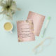 Tenga en cuenta que esta invitación está en papel de volante y es muy delgada. Los sobres no están incluidos. Para invitaciones más gruesas (el mismo diseño) visite nuestra tienda. Un fondo dorado rosa y ruidoso, decorado con vegetación eucaliptos y polvo falso purpurina. Personalizar y un nombre y detalles del fiesta. Letras de color negro.