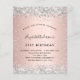 Tenga en cuenta que esta invitación está en papel de volante y es muy delgada. Los sobres no están incluidos. Para invitaciones más gruesas (el mismo diseño) visite nuestra tienda. Para una elegante fiesta de cumpleaños número 21 (o cualquier edad). Un rosa de oro falso de aspecto metálico. Decorado con un falso purpurina de plata. Personalice y agregue un nombre y detalles del fiesta. El nombre se escribe con un guión de estilo con letras a mano