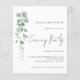 INVITACIÓN PARA FIESTA DE NOCHE DE BODAS DE Eucalipto en PAPEL. Una excelente alternativa de PAPEL (no cartulina) SIN SOBRES a un tamaño más pequeño de 4,5” x 5,6” y a un precio económico. (Los sobres estándar A6 son del tamaño más cercano para que quepan). Un estilo botánico minimalista para invitar a sus invitados a la noche de su boda. Un conjunto de texto manuscrito para la Fiesta de Noche y el resto del texto que puede personalizar fácilmente. Una elegante rama de hojas de eucalipto en acuarela recorre el lado izquierdo.