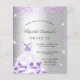 Tenga en cuenta que esta invitación está en papel de volante y es muy delgada. Los sobres no están incluidos. Para invitaciones más gruesas (el mismo diseño) visite nuestra tienda. Una invitación moderna, elegante y glamurosa para una fiesta de 16 y 16 años. Un falso fondo metálico plateado con polvo de imitación purpurina morado y un vestido. El nombre está escrito con una escritura de estilo con letras a mano moderna. Personalice y agregue los detalles de su fiesta.