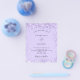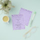 Tenga en cuenta que esta invitación está en papel de volante y es muy delgada. Los sobres no están incluidos. Para invitaciones más gruesas (el mismo diseño) visite nuestra tienda. Fondo violeta de color lavanda. Decorado con purpurina falso violeta. Personalice y agregue sus nombres y detalles.